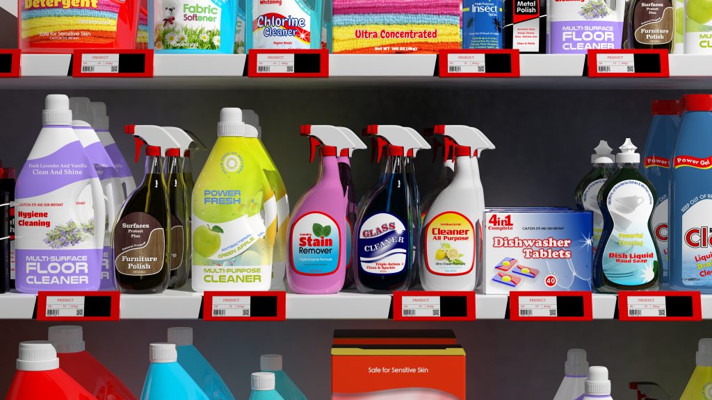 Productos de limpieza y detergentes, ácidos y bases, cosméticos,